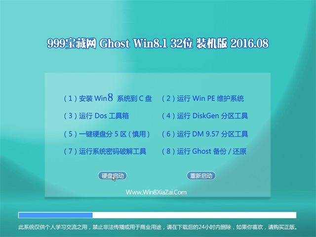 999宝藏网GHOST WIN8.1 32位 装机版 2016.08(永久激活)是2016年8月最新推出的Win8.1 32位装机版本,999宝藏网在炎炎夏日为大家奉上清凉的装机体验。本版通过特别优化,