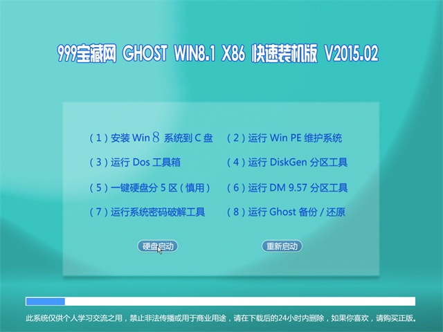 三、999宝藏网 GHOST WIN8.1 X86 快速装机版 V2015.02增强