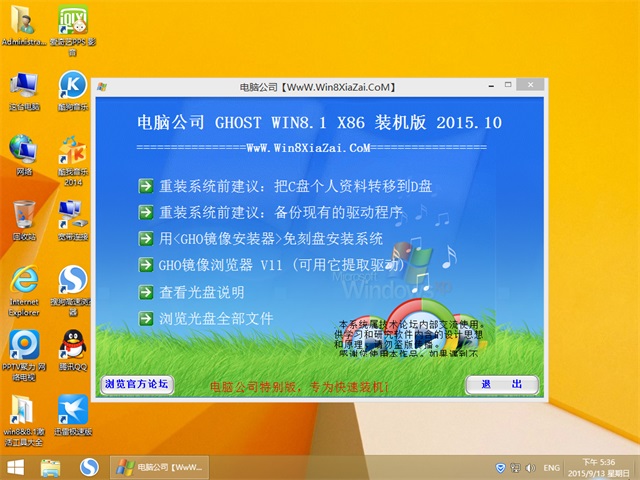 电脑公司 GHOST WIN8.1 X86 国庆装机版 V2015.10(32位)