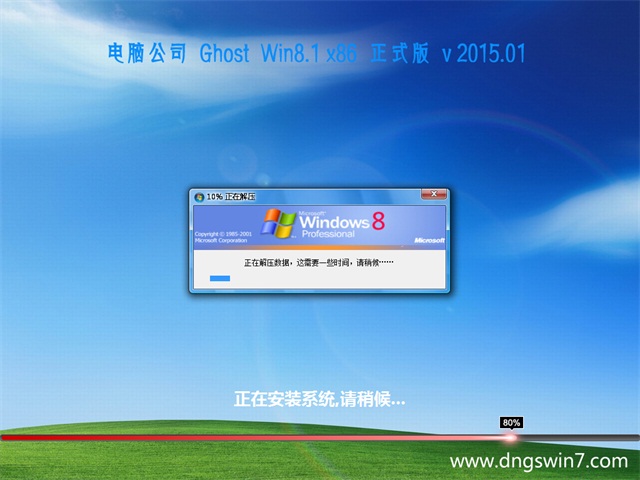 电脑公司 Ghost Win8.1 X86 (32位) 正式版 v2015.01拥有最新款装机系统,是一款实用、稳定安全的系统。追寻的宗旨安装方便快捷、拥有华丽的界面。系统自带安全软件,自动屏蔽木马病毒阻止病毒运行,阻挡填出IE插件,实现系统保持高效的运转速度。日常使用维护方便,自动清理垃圾软件。保持电脑高效运行速度,是一款大家值得安装拥有的装机系统!