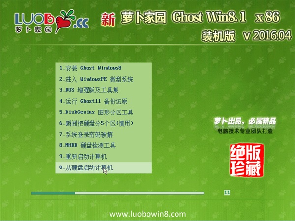 新萝卜家园 Ghost Win8.1 32位 装机版 2016.04系统安装了截止目前全部微软关键补丁,通过微软正版验证,支持在线更新。本系统主要适用于笔记本,也支持其他笔记本。系统提供自带应用软件安装、卸载、升级等全方位服务,保障系统运行流畅。这是一款真正意义上的官方正式版ghost系统,是您的装机之首选,欢迎大家下载新萝卜家园 Ghost Win8.1 32位 装机版 2016.04体验!