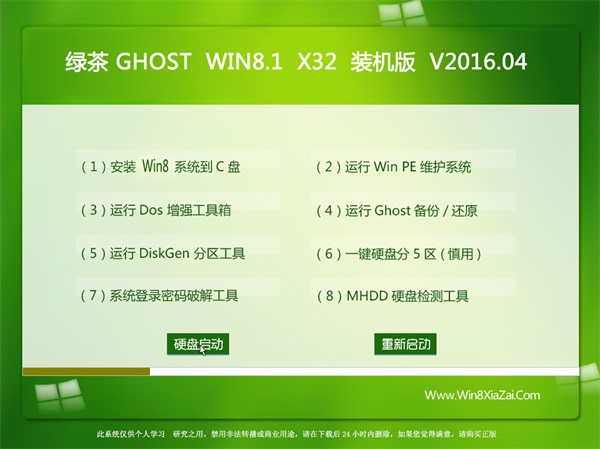 绿茶系统 Ghost Win8.1 32位 装机版 2016.04