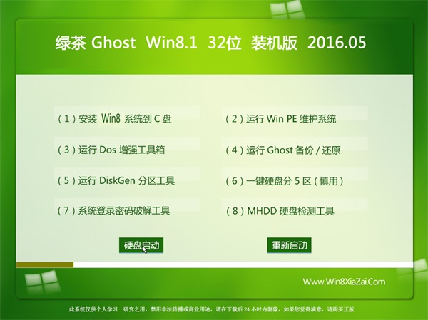 绿茶系统 Ghost Win8.1 32位 装机版 2016.05