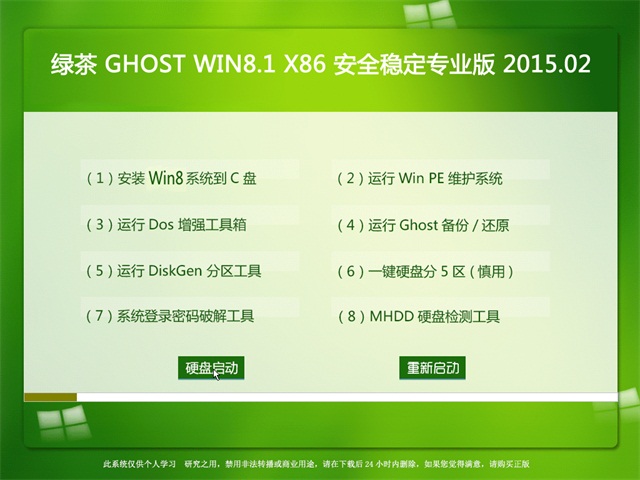 绿茶系统 GHOST WIN8.1 X86 安全稳定专业版 2015.02