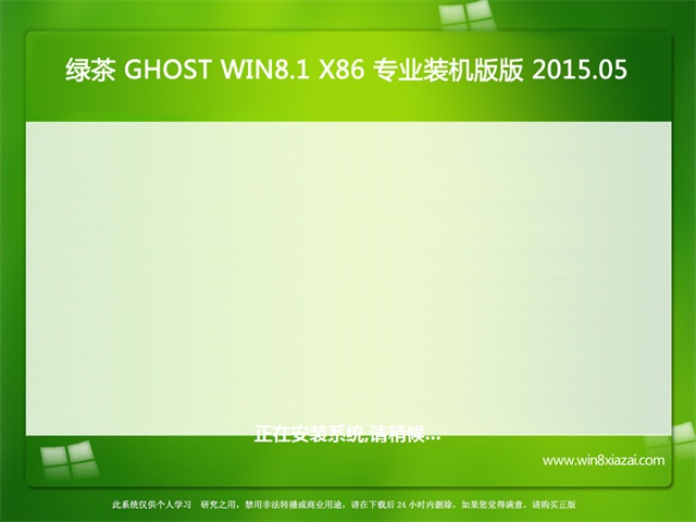 绿茶系统 GHOST WIN8.1 x86 专业装机版 2015.05智能检测笔记本,如果是笔记本则自动关闭小键盘;破解原系统桌面主题的限制(即破解 uxtheme.dll文件),可直接使用第三方主题。我的电脑右键加入了设备管理器、服务、控制面板、方便大家使用;禁用如关闭错误报告,关闭帮助等一些服务,提高系统性能!首次登陆桌面,后台自动判断和执行清理目标机器残留的病毒信息,欢迎大家放心下载使用!