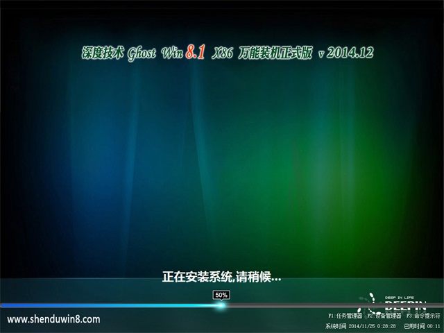 深度技术 Ghost Win8.1 X86 (32位) 万能装机正式版集成常见硬件驱动,智能识别+预解压技术,绝大多数硬件可以快速自动安装相应的驱动。全自动无人值守安装,采用万能GHOST技术,安装系统过程只需10-18分钟,适合新旧各