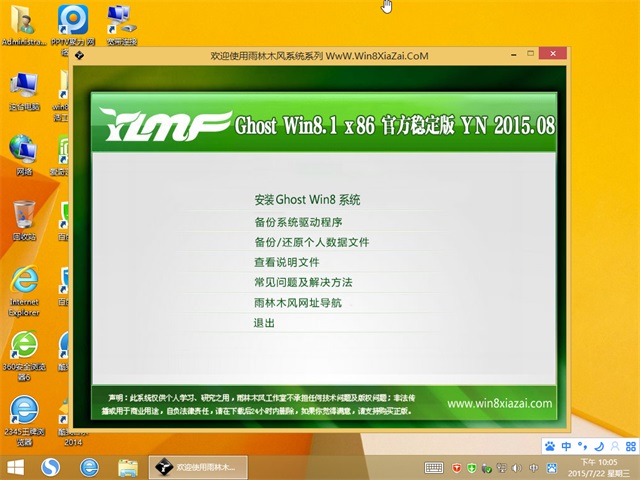 雨林木风(YLMF) Ghost Win8.1 X86 (32位) 官方稳定版 V2015.08