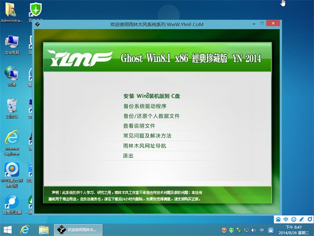 **** 雨林木风 Ghost Win8.1 x86 金典珍藏版(32位) 2014 ****