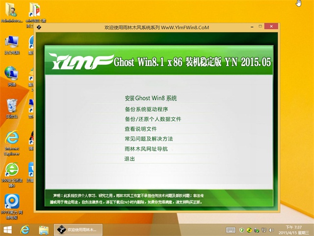 雨林木风 Ghost Win8.1 X86 装机稳定版 2015.05